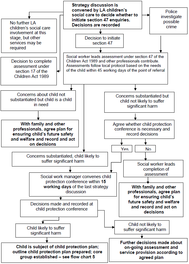 Local authority social workers are responsible for deciding what action to take and how to proceed following section 47 enquiries.
